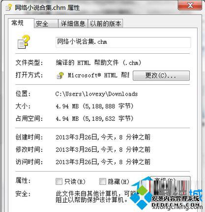 1、右键点击CHM文件,选择属性;