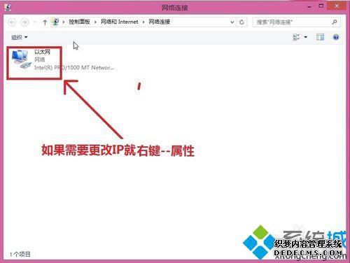 5、 如果要更改IP地址那么就在以太网连接上右键----属性,在IPV4里面的属性中更改。