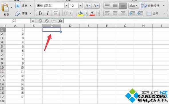2、假设我们需要统计A列里的数据有多少个数字是大于10的。我们先点击选中C1单元格。
