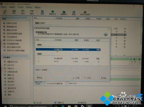 5、在这个窗口选择把系统迁移到哪个磁盘。我们选择磁盘2。点“下一步”。