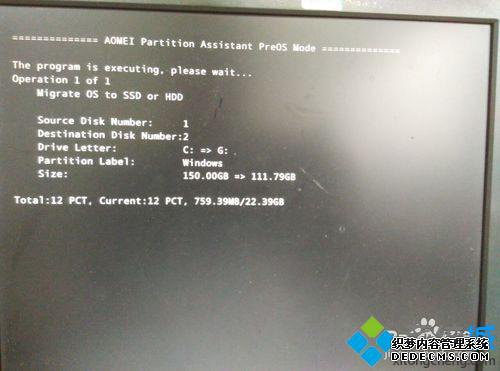 12、重启后自动进入迁移的界面。最下面一行是迁移的进度。耗费的时间根据数据多少和机器配置不同而有些差异。一般10分钟左右。