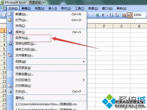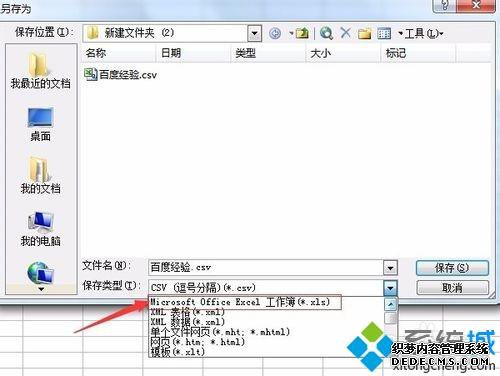 5、选择完成之后,文件名后缀csv变为了xls的后缀,然后进行点击”保存“;