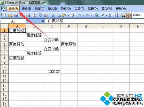 2、下载完成csv的文件,就可以进行打开该文件,进入到文件中界面中,点击菜单中“文件”;